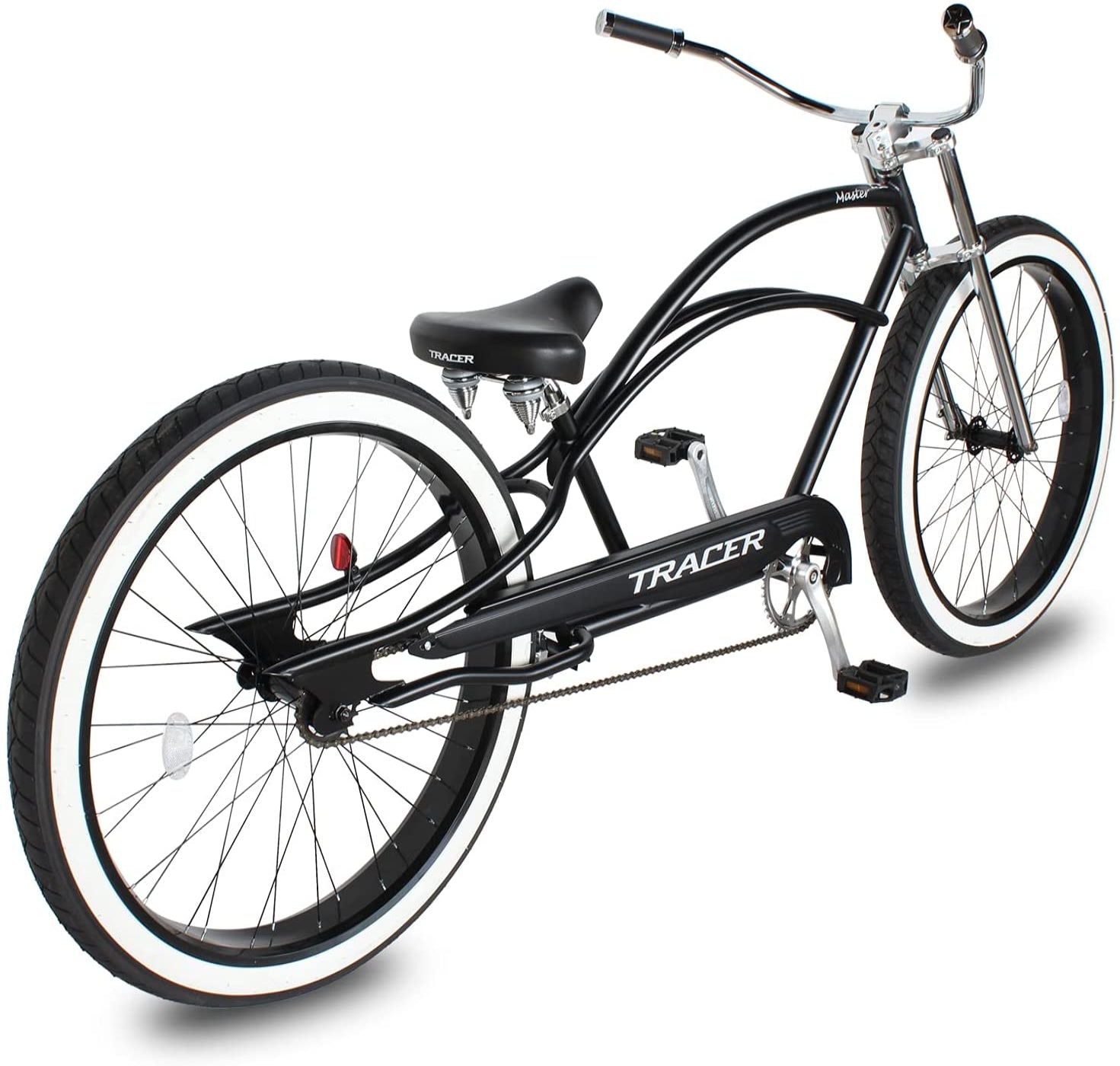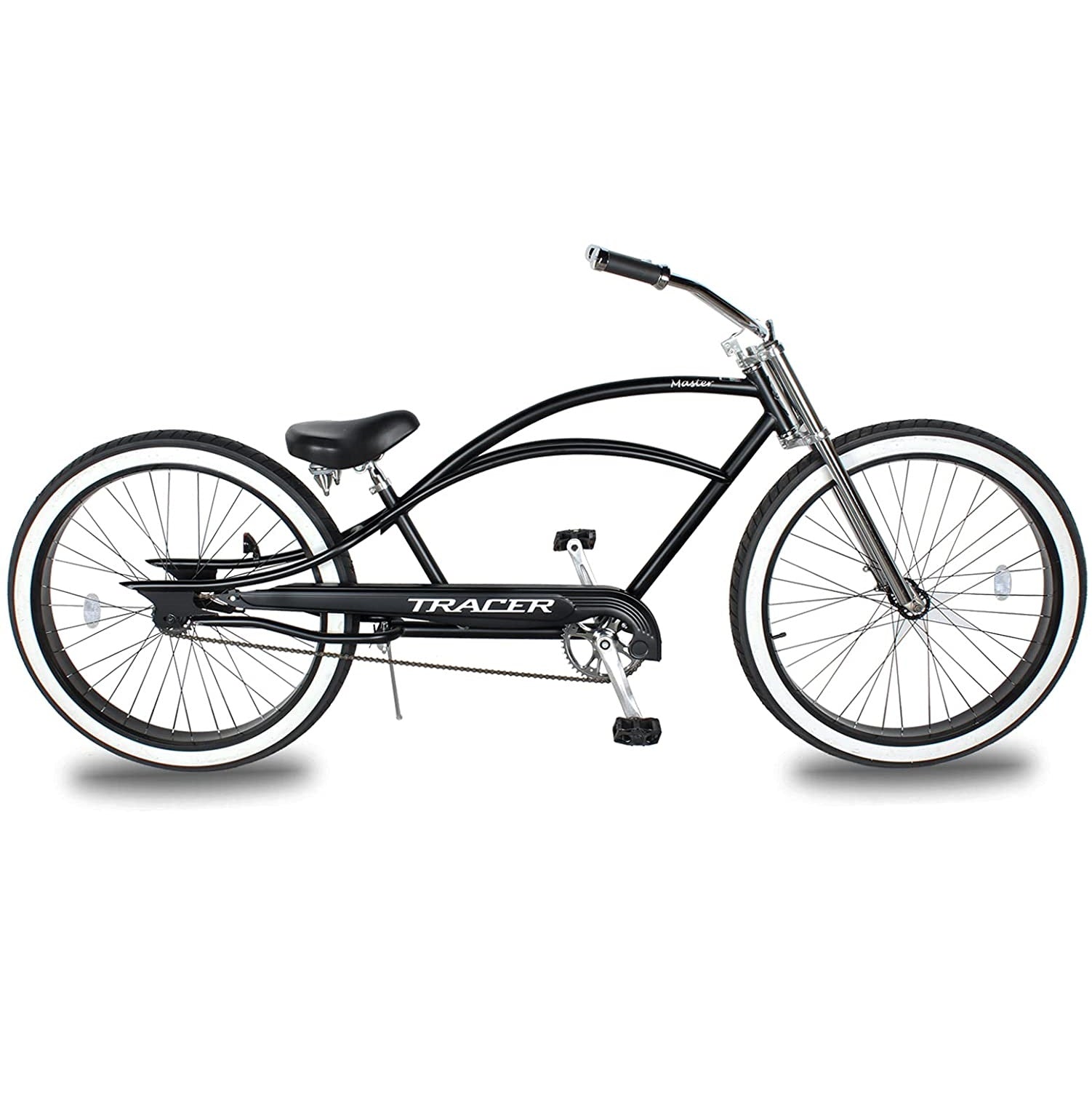 Q: What is the Tracer 29" Master 1-Speed Chopper Stretch Beach Cruiser Fat Tire Bike?